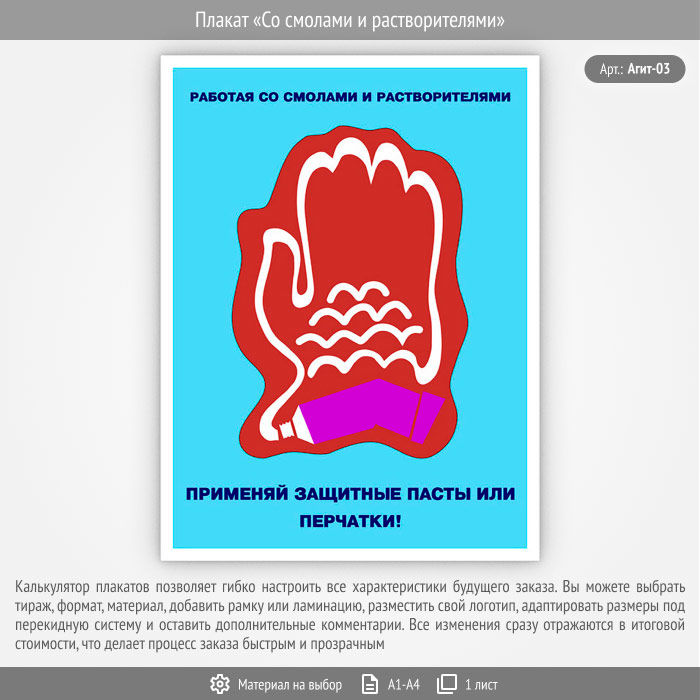 Плакат «Со смолами и растворителями» (Агит-03, 1 лист) в Сургуте купить
