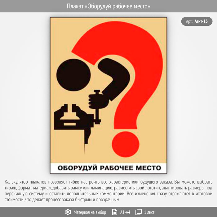 Плакат «Оборудуй рабочее место» (Агит-15, 1 лист) в Сургуте купить