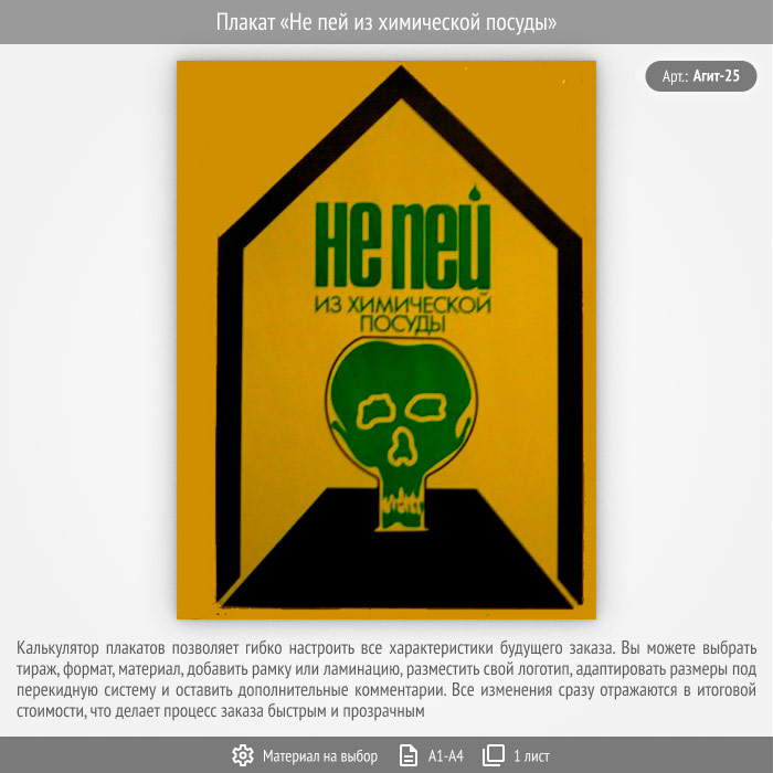 Плакат «Не пей из химической посуды» (Агит-25, 1 лист) в Сургуте купить