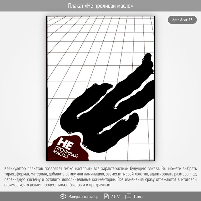 Плакат «Не проливай масло» (Агит-26, 1 лист) в Сургуте купить