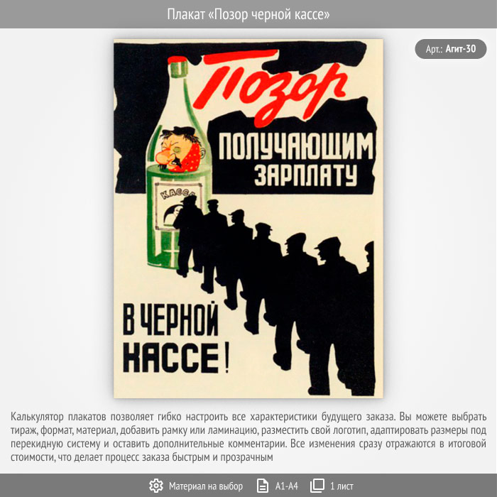 Плакат «Позор черной кассе» (Агит-30, 1 лист) в Сургуте купить
