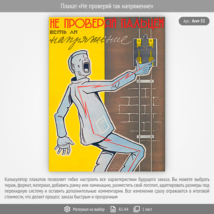 Плакат «Не проверяй так напряжение» (Агит-33, 1 лист) в Сургуте купить