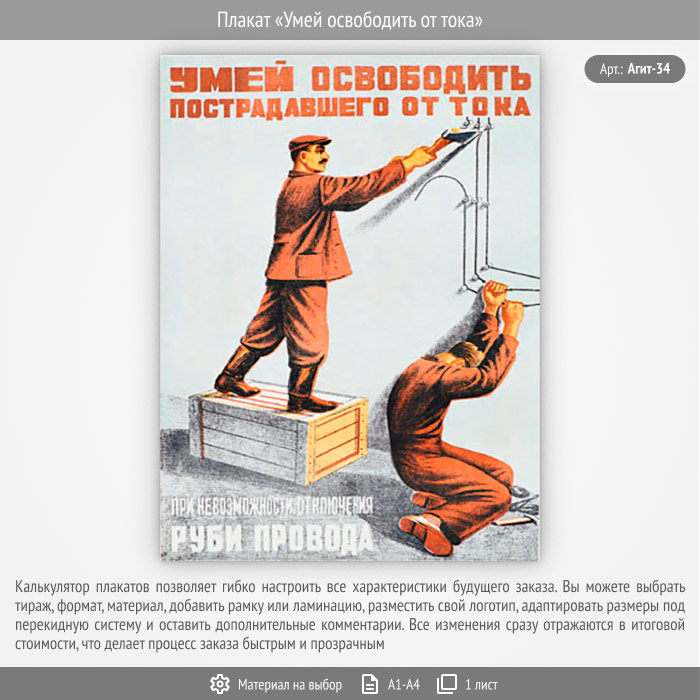 Плакат «Умей освободить от тока» (Агит-34, 1 лист) в Сургуте купить