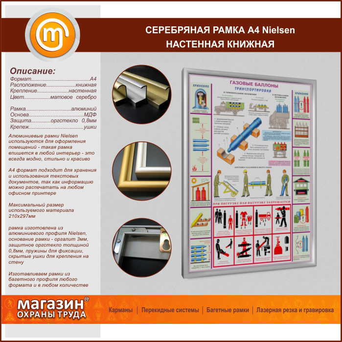 Багетная настенная рамка «Nielsen» А4 формата, книжная, матовое серебро в Сургуте купить