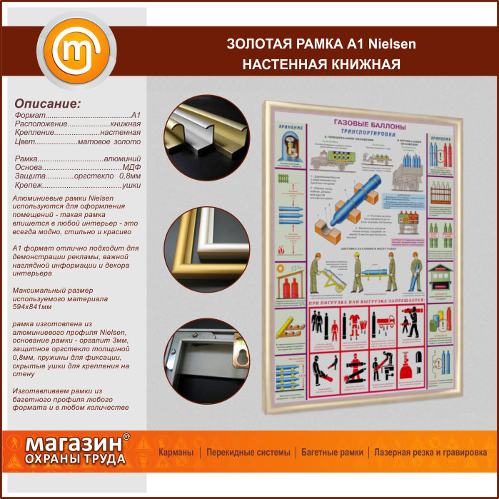 Багетная настенная рамка «Nielsen» А1 формата, книжная, матовое золото в Сургуте купить