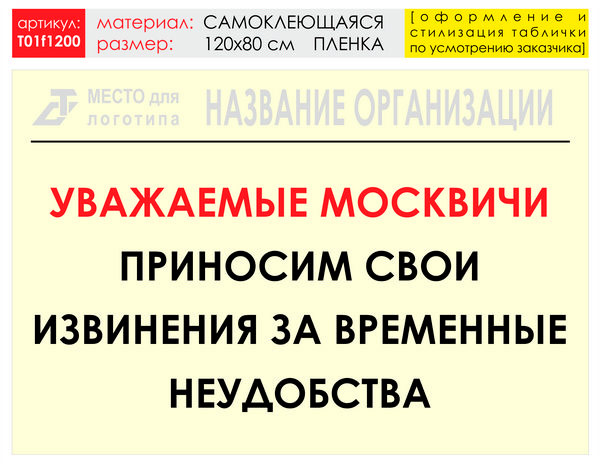 Баннер «Извинения», T01 (самоклеящаяся плёнка, 120х90 см) в Сургуте купить