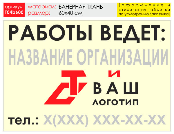 Баннер «Работы ведет», T04 (баннерная ткань, 60х40 см) в Сургуте купить
