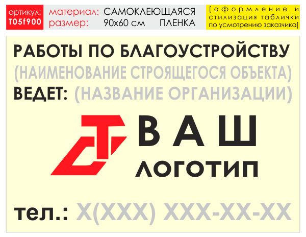Баннер «Работы по благоустройству», T05 (самоклеящаяся плёнка, 90х60 см) в Сургуте купить