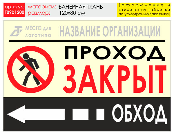 Баннер «Обход слева», T09 (баннерная ткань, 120х90 см) в Сургуте купить