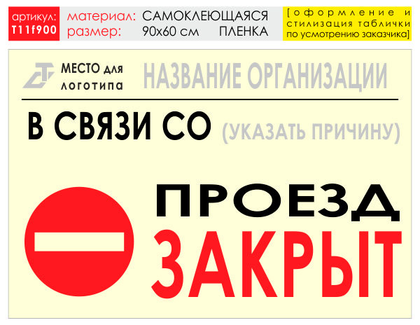 Баннер «Проезд закрыт», T11 (самоклеящаяся плёнка, 90х60 см) в Сургуте купить