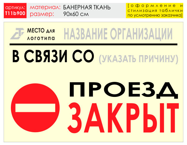 Баннер «Проезд закрыт», T11 (баннерная ткань, 90х60 см) в Сургуте купить
