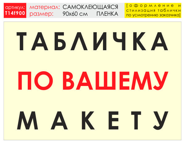 Баннер «Табличка по Вашему макету», T14 (самоклеящаяся плёнка, 90х60 см) в Сургуте купить