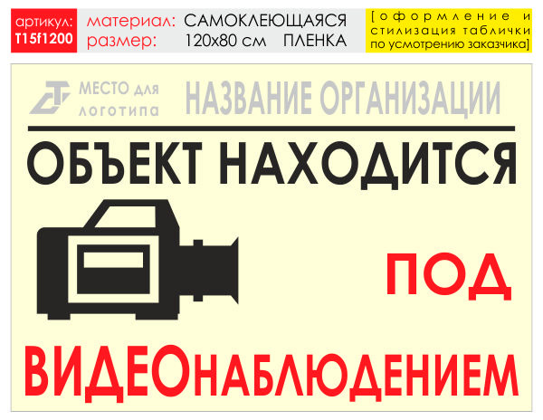 Баннер «Видеонаблюдение», T15 (самоклеящаяся плёнка, 120х90 см) в Сургуте купить