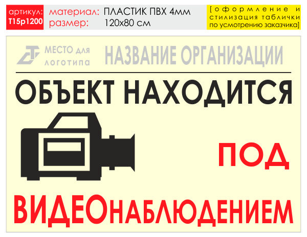 Баннер «Видеонаблюдение», T15 (пластик 4 мм, 120х90 см) в Сургуте купить
