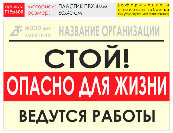 Баннер «Опасно для жизни», T19 (пластик 4 мм, 60х40 см) в Сургуте купить
