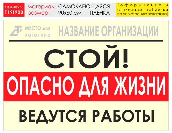Баннер «Опасно для жизни», T19 (самоклеящаяся плёнка, 90х60 см) в Сургуте купить