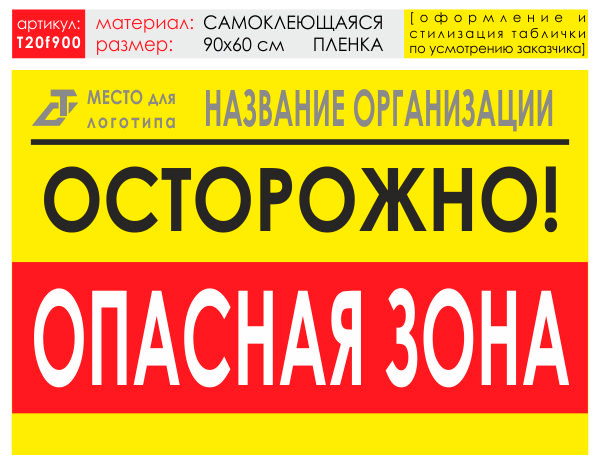 Баннер «Опасная зона», T20 (самоклеящаяся плёнка, 90х60 см) в Сургуте купить