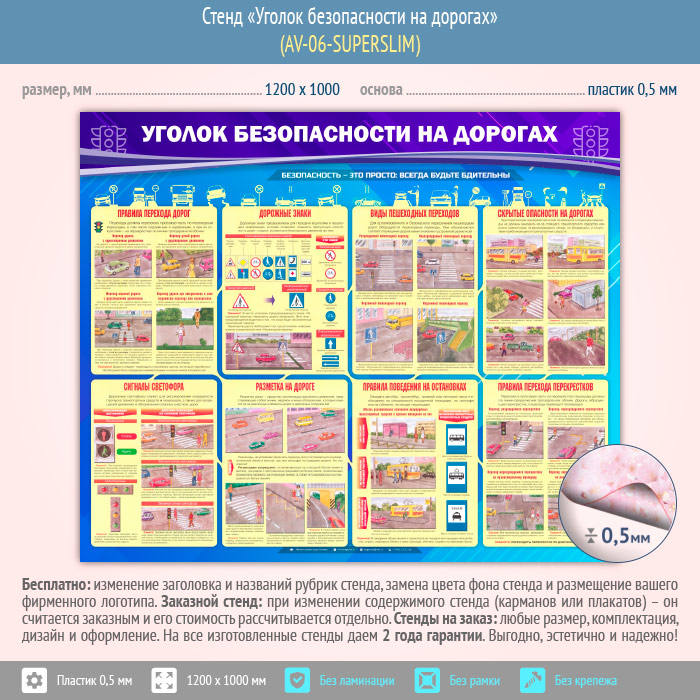Стенд «Уголок безопасности на дорогах» (AV-06-SUPERSLIM) в Сургуте купить