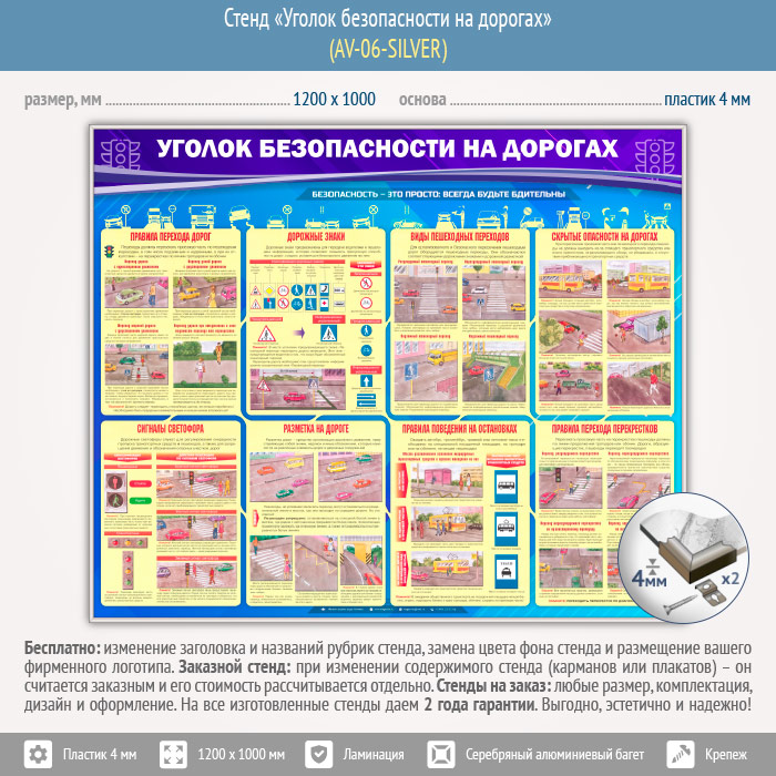 Стенд «Уголок безопасности на дорогах» (AV-06-SILVER) в Сургуте купить