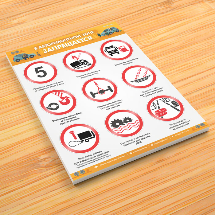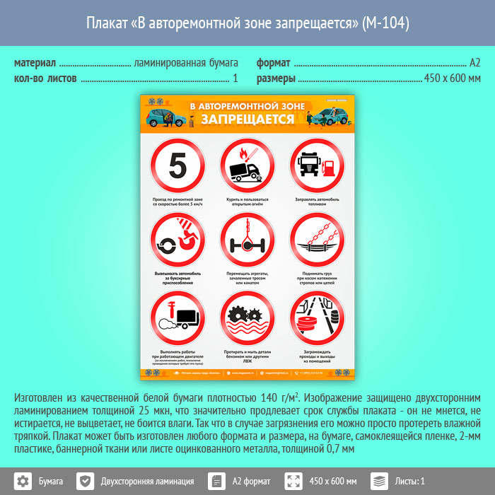 Плакат «В авторемонтной зоне запрещается» (М-104, ламинированная бумага, А2, 1 лист) в Сургуте купить