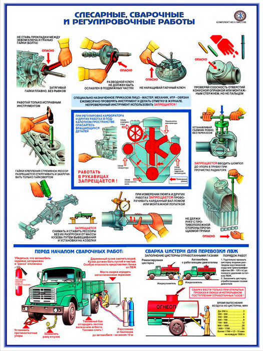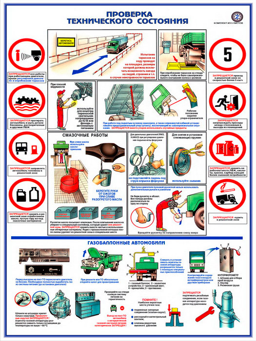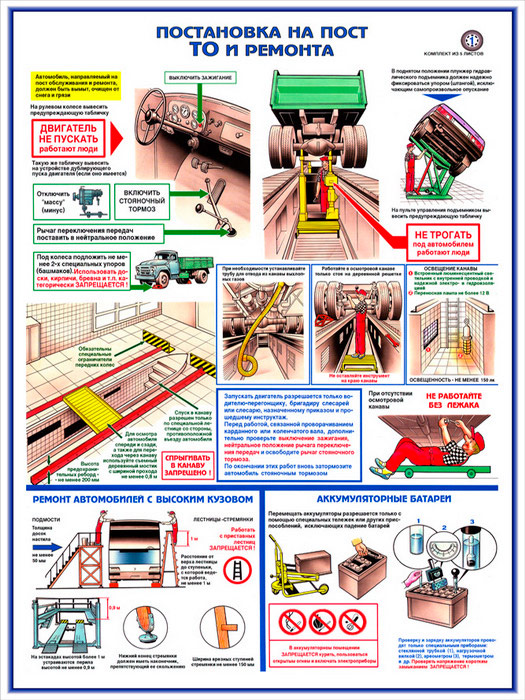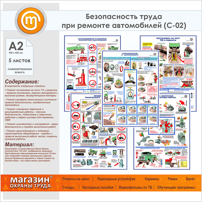 Плакат «Техника безопасности при ремонте автомобилей» (С-02, ламинированная бумага, А2, 5 листов) в Сургуте купить