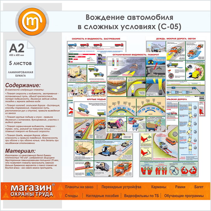 Плакаты «Вождение автомобиля в сложных условиях» (С-05, ламинированная бумага, А2, 5 листов) в Сургуте купить