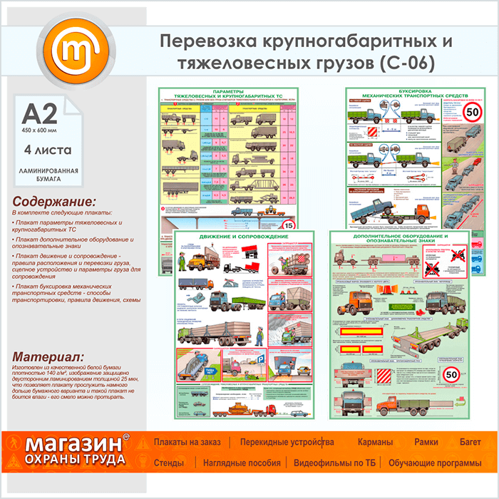 Плакаты «Перевозка крупногабаритных и тяжеловесных грузов» (С-06, ламинированная бумага, А2, 4 листа) в Сургуте купить