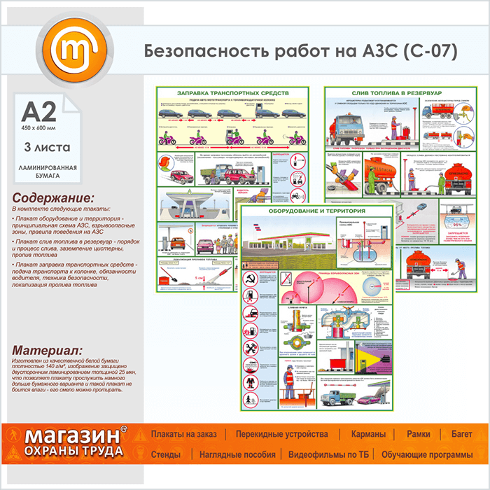 Плакаты «Безопасность работ на АЗС» (С-07, ламинированная бумага, А2, 3 листа) в Сургуте купить