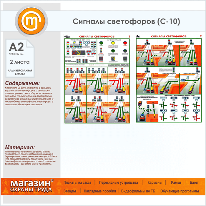 Плакаты «Сигналы светофоров» (С-10, ламинированная бумага, А2, 2 листа) в Сургуте купить