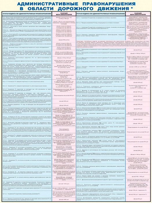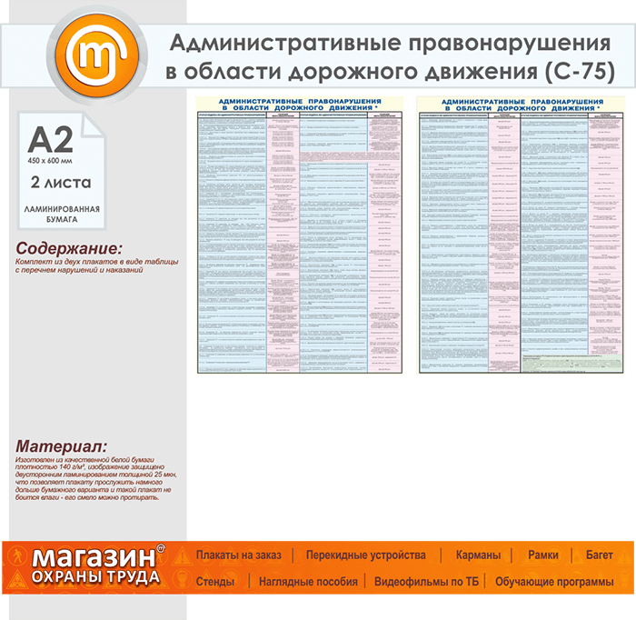 Плакаты «Административные правонарушения в области дорожного движения» (С-75, ламинированная бумага, А2, 2 листа) в Сургуте купить