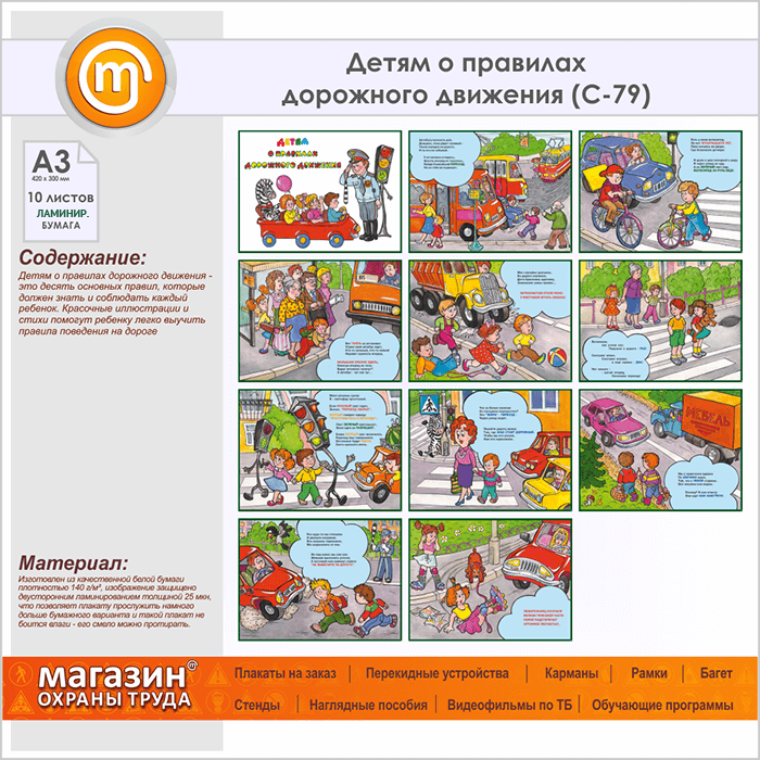 Плакаты «Детям о правилах дорожного движения» (С-79, ламинированная бумага, А3, 10 листов) в Сургуте купить