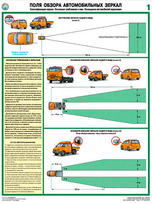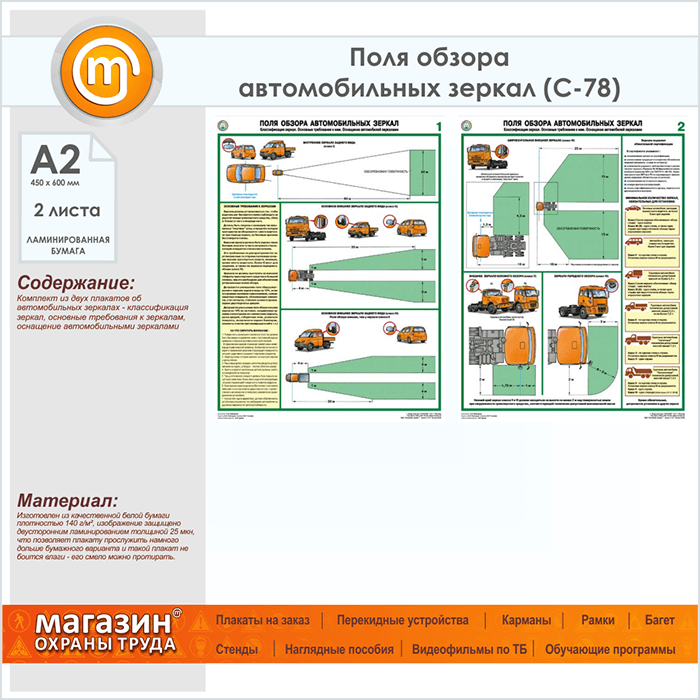 Плакаты «Поля обзора автомобильных зеркал» (С-78, ламинированная бумага, А2, 2 листа) в Сургуте купить