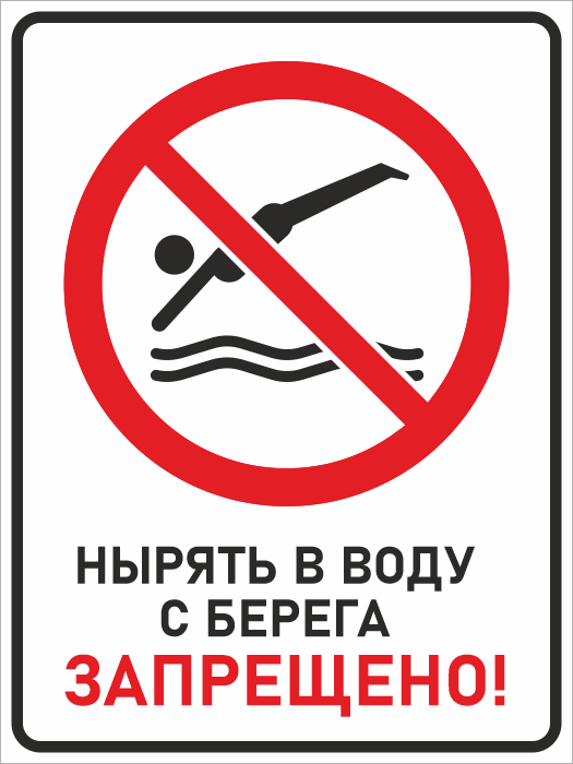 Знак «Нырять в воду с берега запрещено!», БВ-16 (пластик 2 мм, 400х600 мм) в Сургуте купить