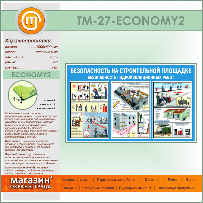 Стенд «Безопасность на строительной площадке. Безопасность гидроизоляционных работ» (TM-27-ECONOMY2) в Сургуте купить