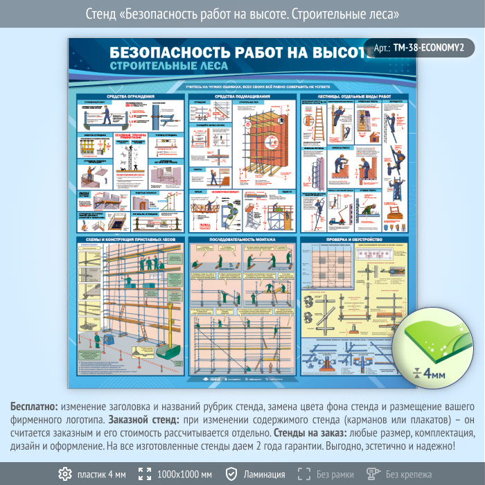 Стенд «Безопасность работ на высоте. Строительные леса» (TM-38-ECONOMY2) в Сургуте купить