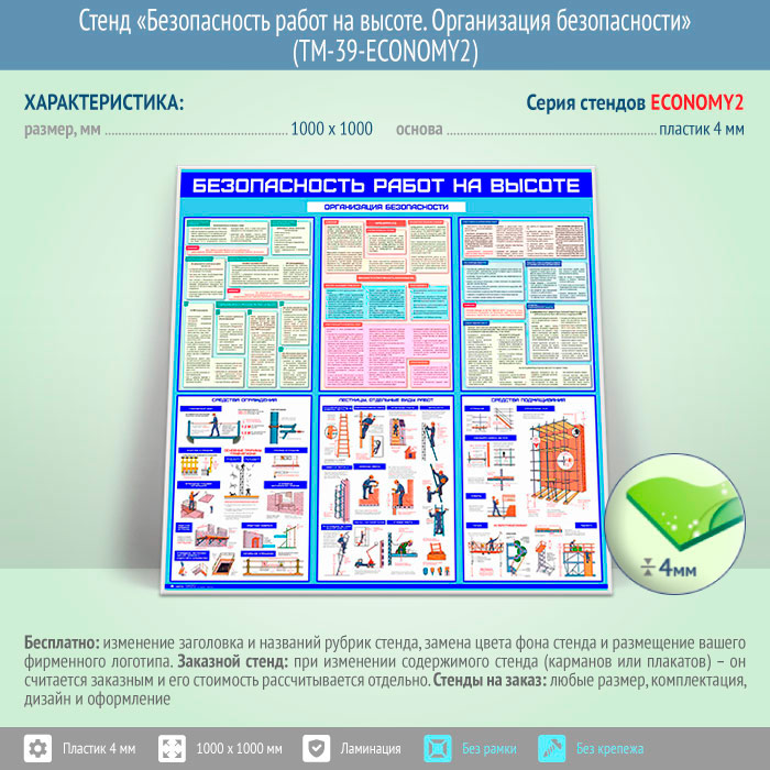 Стенд «Безопасность работ на высоте. Организация безопасности» (TM-39-ECONOMY2) в Сургуте купить