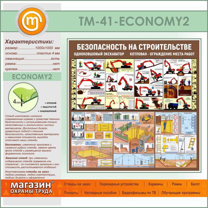 Стенд «Безопасность земляных работ. Экскаватор, котлован» (TM-41-ECONOMY2) в Сургуте купить