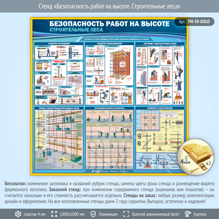 Стенд «Безопасность работ на высоте. Строительные леса» (TM-38-GOLD) в Сургуте купить