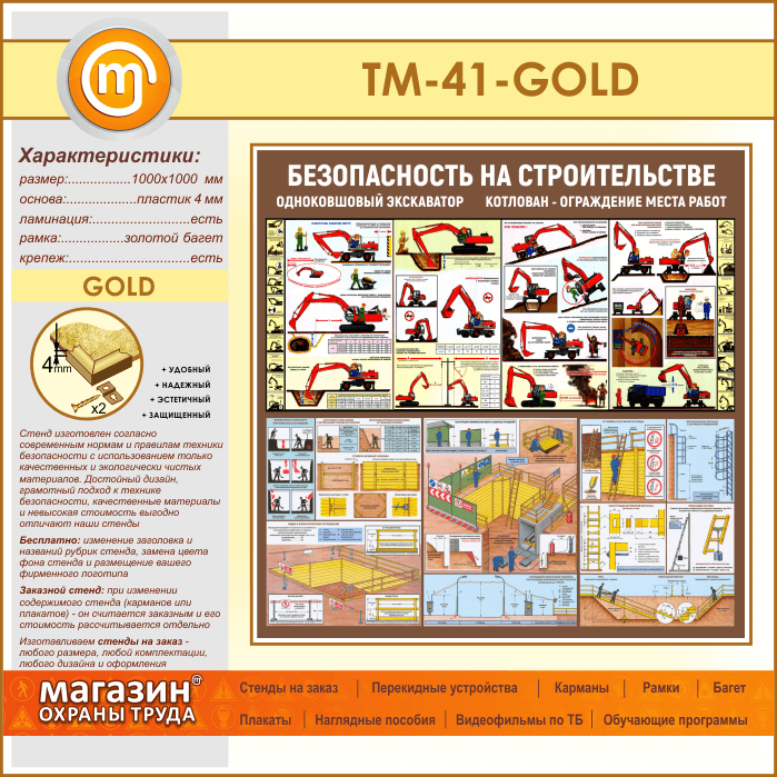 Стенд «Безопасность земляных работ. Экскаватор, котлован» (TM-41-GOLD) в Сургуте купить