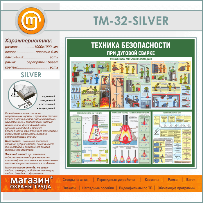 Стенд «Техника безопасности при дуговой сварке» (TM-32-SILVER) в Сургуте купить