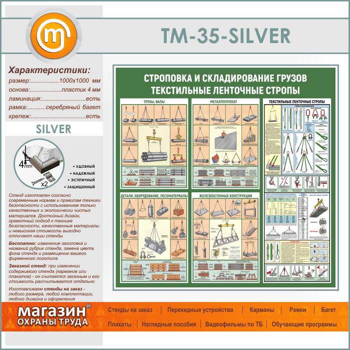 Стенд «Строповка и складирование грузов. Текстильные ленточные стропы» (TM-35-SILVER) в Сургуте купить