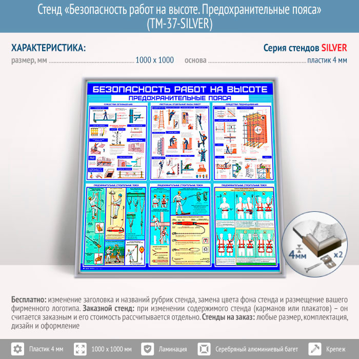 Стенд «Безопасность работ на высоте. Предохранительные пояса» (TM-37-SILVER) в Сургуте купить