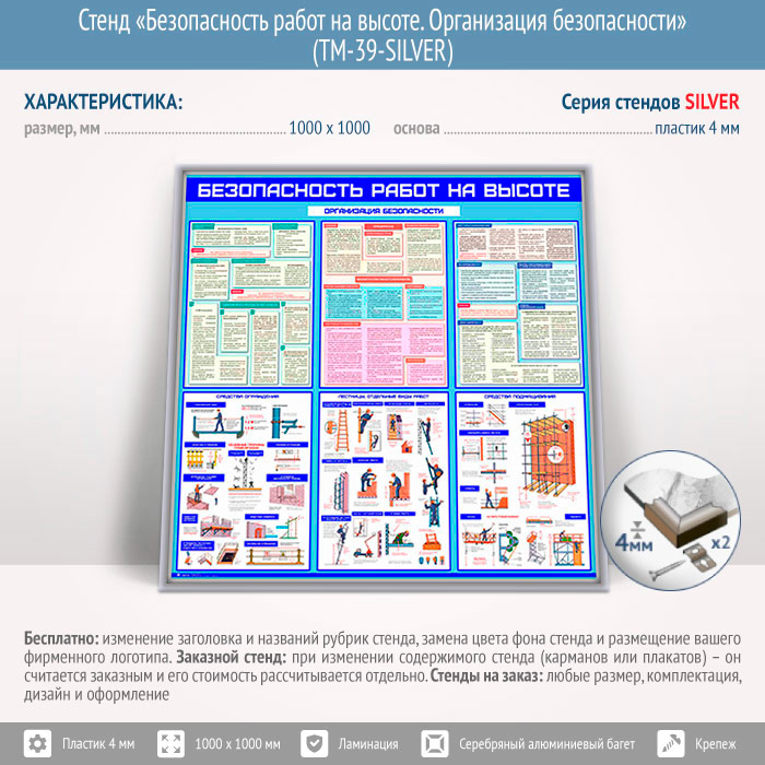 Стенд «Безопасность работ на высоте. Организация безопасности» (TM-39-SILVER) в Сургуте купить