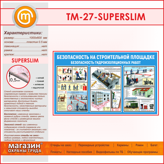 Стенд «Безопасность на строительной площадке. Безопасность гидроизоляционных работ» (TM-27-SUPERSLIM) в Сургуте купить