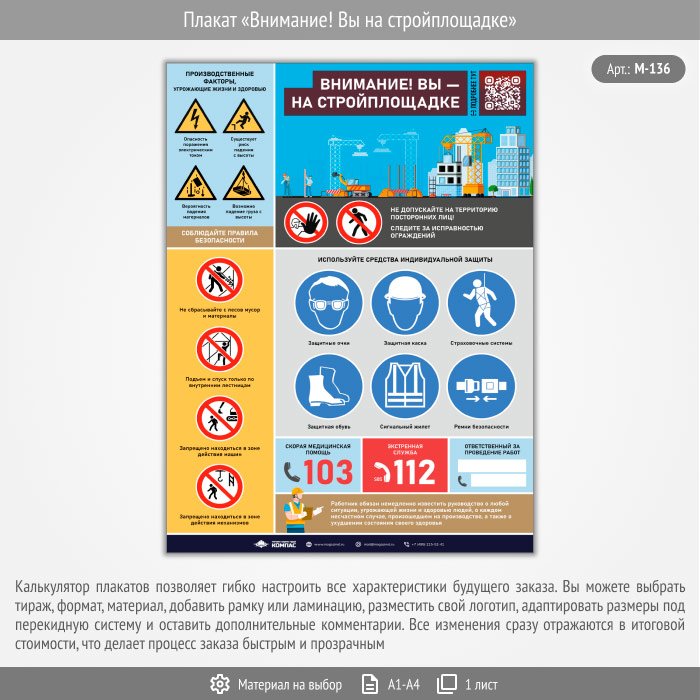 Плакат «Внимание! Вы на стройплощадке» с QR (М-136, 1 лист) в Сургуте купить