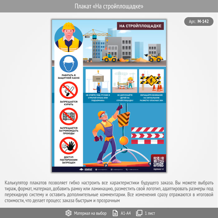 Плакат «На стройплощадке» с QR (М-142, 1 лист) в Сургуте купить