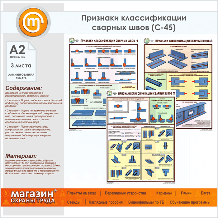 Плакаты «Признаки классификации сварных швов» (С-45, ламинированная бумага, А2, 3 листа) в Сургуте купить