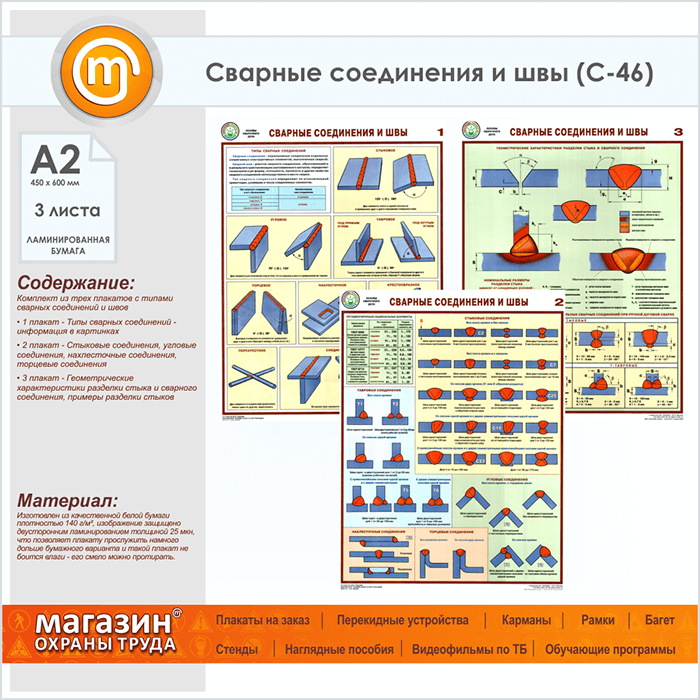Плакаты «Сварные соединения и швы» (С-46, ламинированная бумага, А2, 3 листа) в Сургуте купить