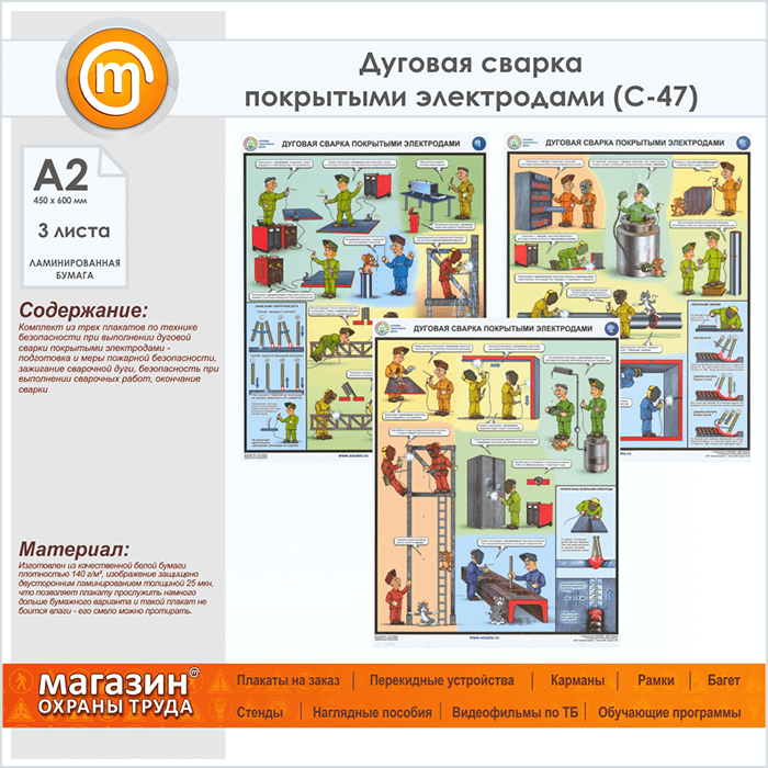 Плакаты «Дуговая сварка покрытыми электродами» (С-47, ламинированная бумага, А2, 3 листа) в Сургуте купить