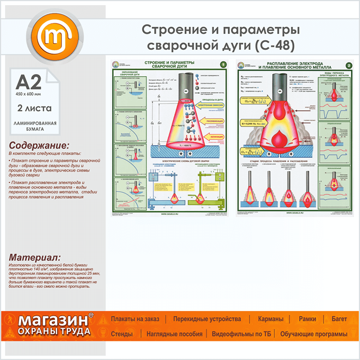 Плакаты «Строение и параметры сварочной дуги» (С-48, ламинированная бумага, А2, 2 листа) в Сургуте купить
